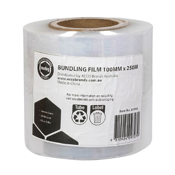 The Marbig bundling film is ideal for stabilising packages on onsite pallets