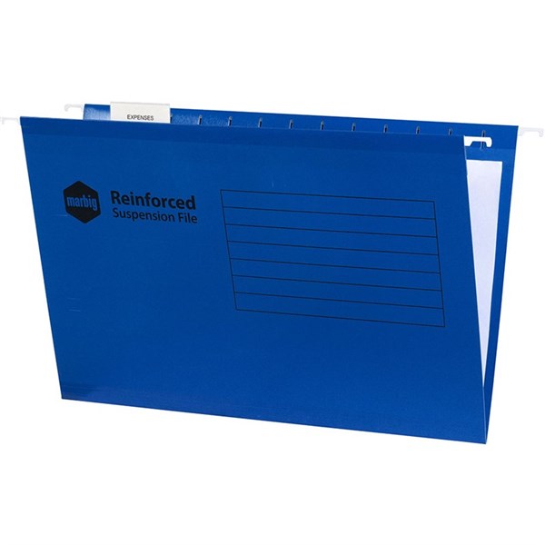The Marbig suspension files come complete with tabs and inserts and are also available in a variety of colours