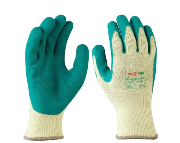 MAXISAFE GRIPPA GLOVE KNITTED POLY COTTON, MEDIUM GREEN LATEX PALM