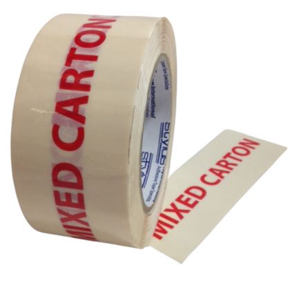 MIXED CARTON MESSAGE PACKAGING TAPE 48MM X 66M WHITE TAPE RED PRINT