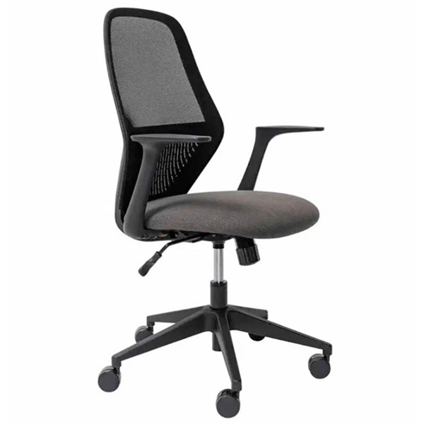 • It features adjustable seat height, synchronised adjustable seat and back rest angle, and fixed armrests