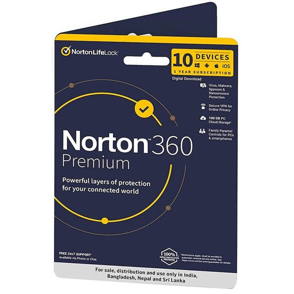 Norton 360 Premium anti-virus software is for 1 user, 10 device with 1 year subscription