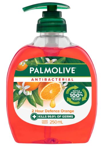 • Palmolive Antibacterial 2 Hour Defence Orange Hand Wash is made with skin-loving ingredients and a natural antibacterial agent for healthy, beautiful hands. Kills 99.9% of germs