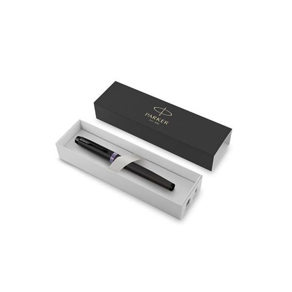 PARKER IM FOUNTAIN PEN VIBRANT RINGS SATIN BLACK WITH AMETHYST PURPLE ACCENTS
