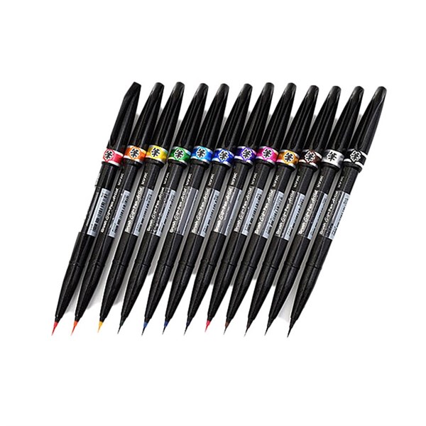 PENTEL ARTS BRUSH SIGN PEN ARTIST 12 ASSORTED COLOUR WALLET