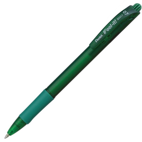 PENTEL BX417 IFEEL-IT RETRACTABLE BALLPOINT PEN 0.7MM GREEN BOX 12