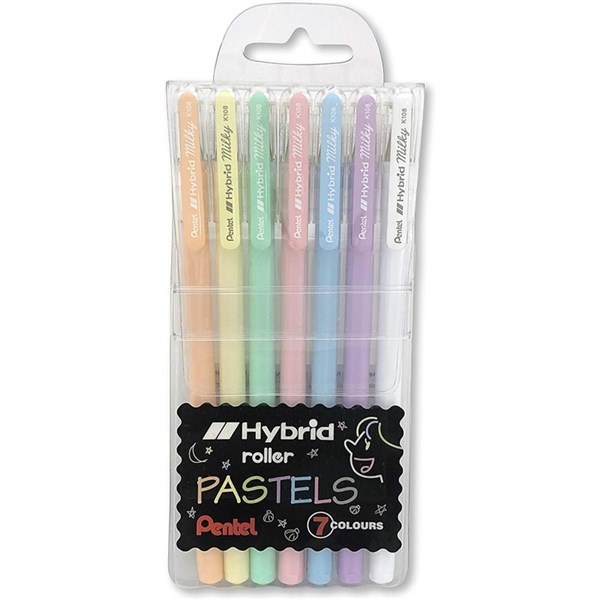 PENTEL K108 HYBRID MILKY GEL INK PEN 0.8MM PASTEL ASSORTED BOX 7