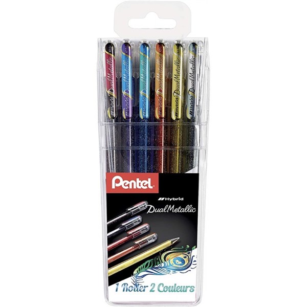 PENTEL K110 HYBRID DUAL METALLIC GEL INK PEN 1.0MM ASSORTED BOX 6