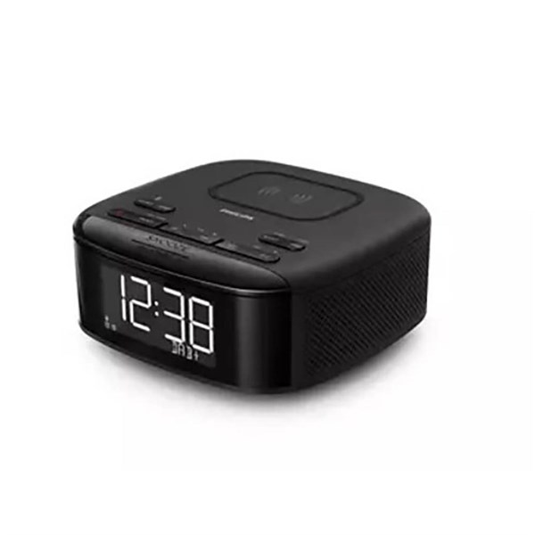 • This bluetooth clock radio features a wireless Qi charger and USB charging