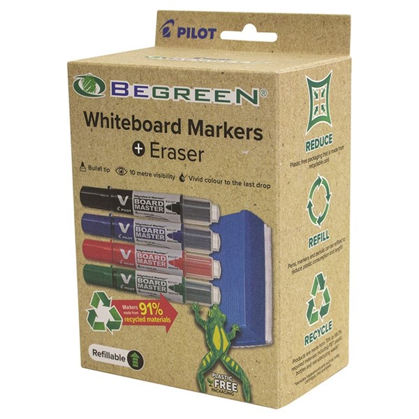 PILOT BEGREEN BOARD MASTER WHITEBOARD MARKERS PLUS ERASERS BULLET TIP ASSORTED