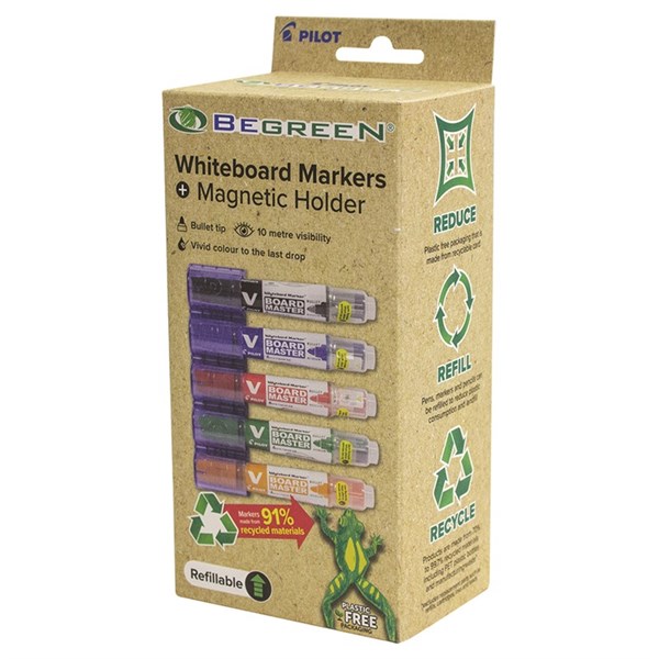 PILOT BEGREEN BOARD MASTER WHITEBOARD MARKERS PLUS MAGNETIC HOLDER BULLET TIP ASSORTED