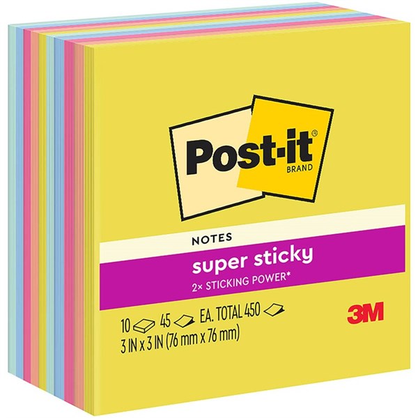 POST-IT 654-10SSJOY SUPER STICKY NOTES 76 X 76MM SUMMER JOY PACK 10