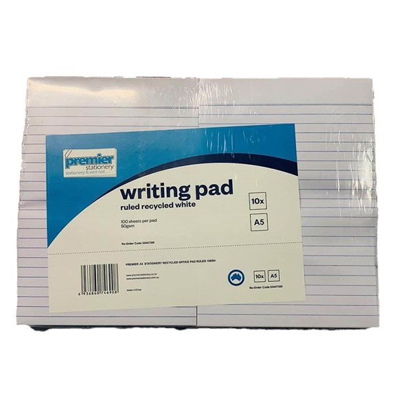 PREMIER RECYCLED WRITING PAD 100 SHEETS A5 PACK 10
