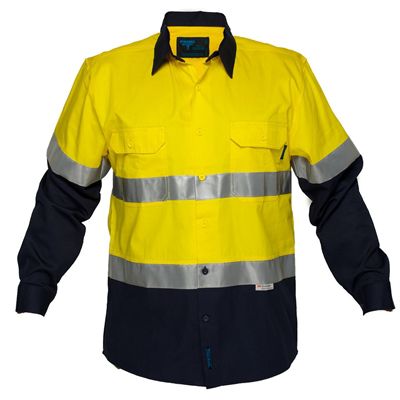 PRIME MOVER MA801 COTTON DRILL SHIRT LONG SLEEVE LIGHTWEIGHT WITH TAPE 2-TONE YELLOW NAVY 5XL