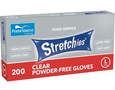 PrimeSource? Stretchies gloves are made with a stretchable material offering both durability and softness. Easy to put on and easy to take off, Stretchies are ideal for foodservice or food processing applications. Stretchies? gloves are powder free, high strength, and stretchy for a comfortable, secure fit