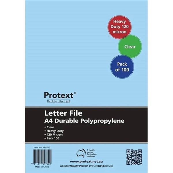 PROTEXT LETTER FILE A4 CLEAR PACK 100