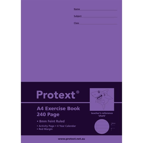 PROTEXT NB5035 EXERCISE BOOK RULED 8MM 70GSM 240 PAGE A4 SHARK ASSORTED