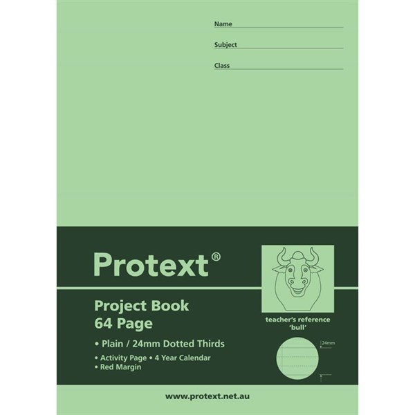 PROTEXT PROJECT BOOK PLAIN/DOTTED THIRDS 24MM 64 PAGE 330 X 245MM BULL ASSORTED