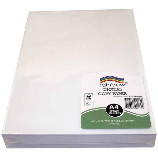 RAINBOW DIGITAL A4 COPY PAPER MATT 100GSM WHITE 250 SHEETS