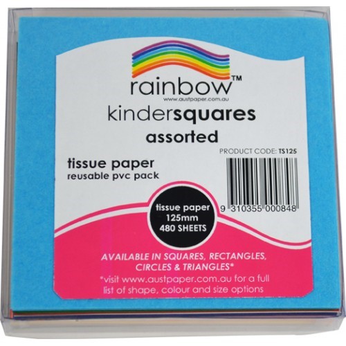 RAINBOW KINDER SHAPES TISSUE SQUARES DOUBLE SIDED 17GSM 125MM ASSORTED PACK 480