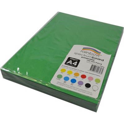 RAINBOW SPECTRUM BOARD 220GSM A4 EMERALD GREEN PACK 100