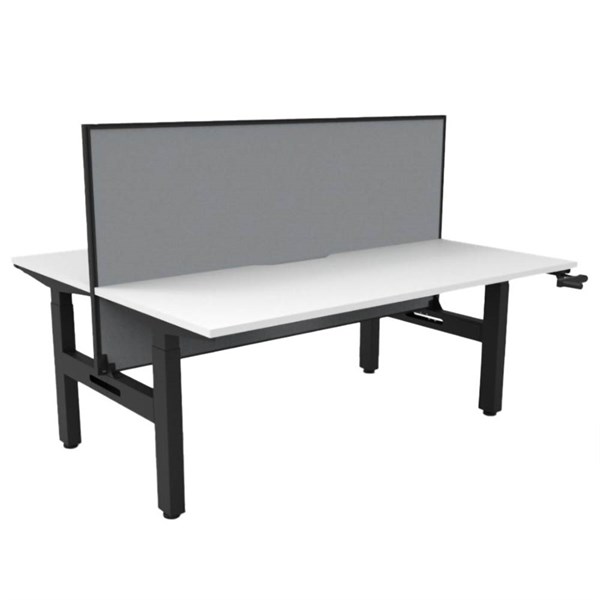 RAPIDLINE BOOST CRANK BACK TO BACK WORKSTATION WITH SCREEN 1800 X 1500 X 705MM NATURAL WHITE TOP AND BLACK SATIN FRAME