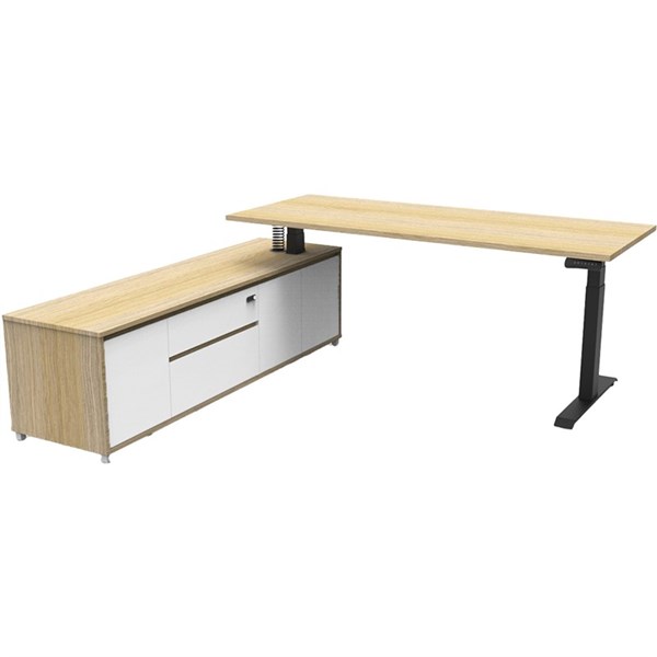 RAPIDLINE BOOST PLUS EXECUTIVE HEIGHT ADJUSTABLE WORKSTATION LHC 1800 X 750MM NATURAL OAK/BLACK