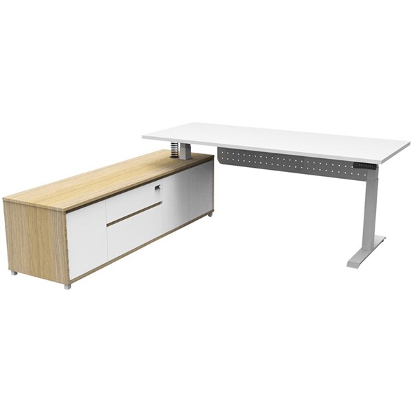 RAPIDLINE BOOST PLUS EXECUTIVE HEIGHT ADJUSTABLE WORKSTATION WITH MODESTY PANEL LHC 2100 X 750MM NATURAL WHITE/WHITE