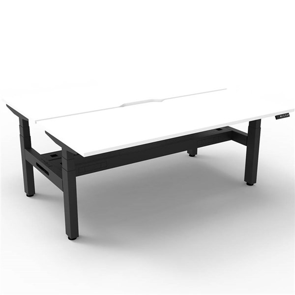 RAPIDLINE BOOST PLUS HEIGHT ADJUSTABLE DOUBLE SIDED WORKSTATION WITH CABLE TRAY 1200 X 750MM NATURAL WHITE TOP / BLACK FRAME