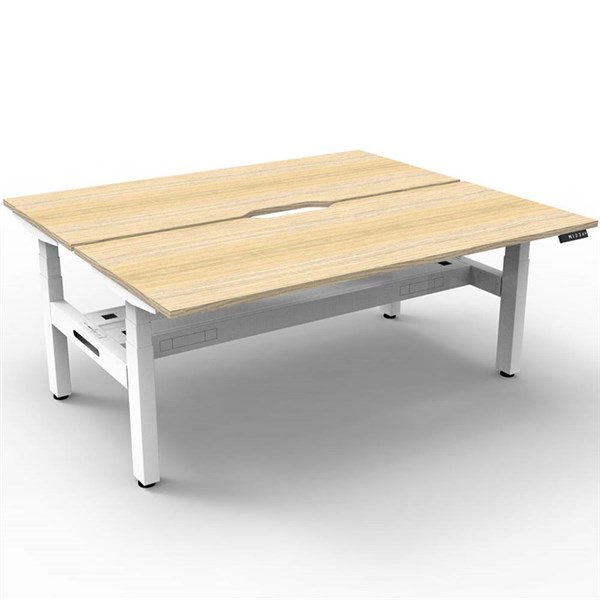 RAPIDLINE BOOST PLUS HEIGHT ADJUSTABLE DOUBLE SIDED WORKSTATION WITH CABLE TRAY 1800 X 750MM NATURAL OAK TOP / WHITE FRAME