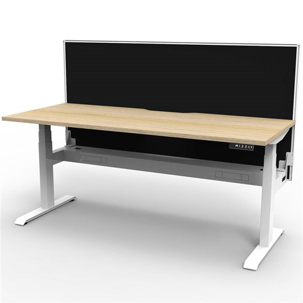 RAPIDLINE BOOST PLUS HEIGHT ADJUSTABLE SINGLE SIDED WORKSTATION WITH SCREEN / CABLE TRAY 1800 X 750MM NATURAL OAK TOP / WHITE FRAME / BLACK SCREEN
