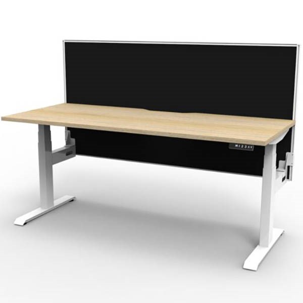 RAPIDLINE BOOST PLUS HEIGHT ADJUSTABLE SINGLE SIDED WORKSTATION WITH SCREEN 1500 X 750MM NATURAL OAK TOP / WHITE FRAME / BLACK SCREEN