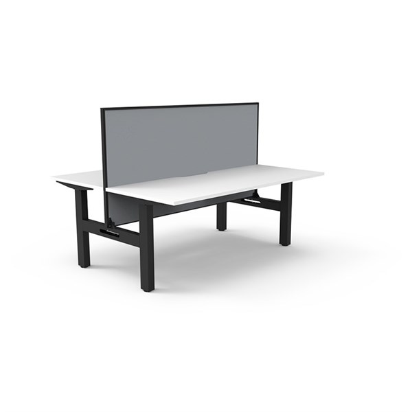 RAPIDLINE BOOST STATIC DOUBLE SIDED WORKSTATION WITH SCREEN 1800MM NATURAL WHITE TOP / BLACK FRAME / GREY SCREEN