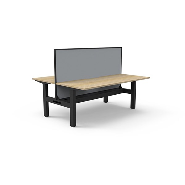 RAPIDLINE BOOST STATIC DOUBLE SIDED WORKSTATION WITH SCREEN AND CABLE TRAY 1200MM NATURAL OAK TOP / BLACK FRAME / GREY SCREEN