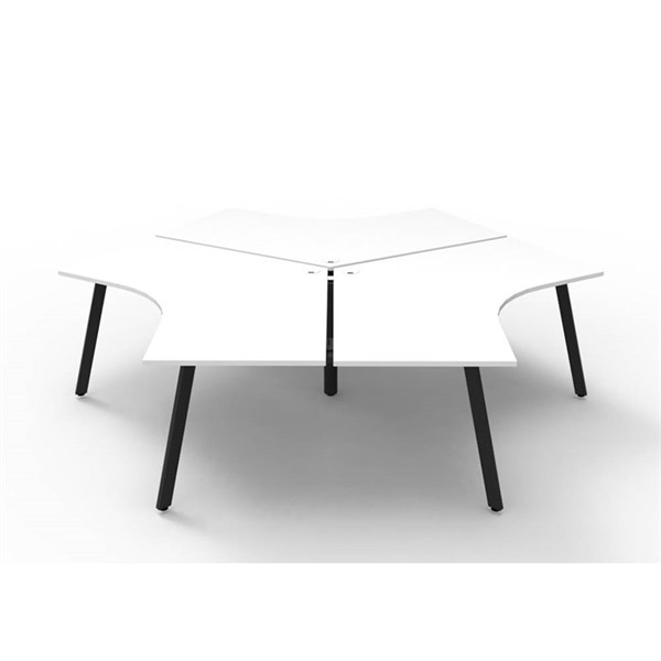 RAPIDLINE DELUXE INFINITY 120 DEGREE WORKSTATION ETERNITY LEG 3 PERSON 2866W X 730MM NATURAL WHITE TOP AND BLACK P/C FRAME