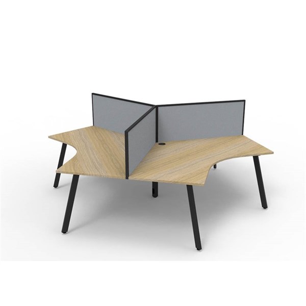 RAPIDLINE DELUXE INFINITY 120 DEGREE WORKSTATION ETERNITY LEG 3 PERSON WITH SCREEN 2866W X 730MM NATURAL OAK TOP AND BLACK P/C FRAME