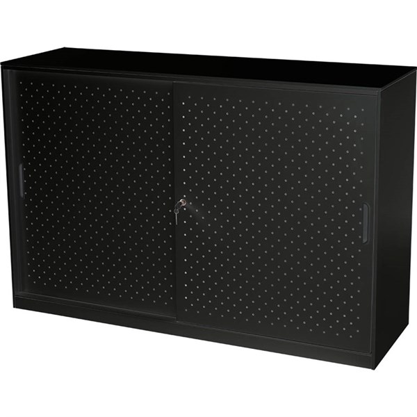 RAPIDLINE GO PERFORATED SLIDING DOOR CUPBOARD 1530 X 1016 X 473MM BLACK