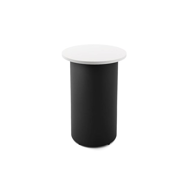 RAPIDLINE ROUND HIGH BAR TABLE DRUM BASE 600MM X 1050MM NATURAL WHITE TOP AND BLACK P/C FRAME
