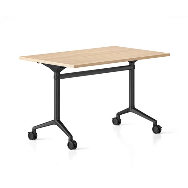 RAPIDLINE TYPHOON FLIP TOP TABLE 1500 X 750MM NATURAL OAK TOP AND BLACK P/C ALL OVER FRAME