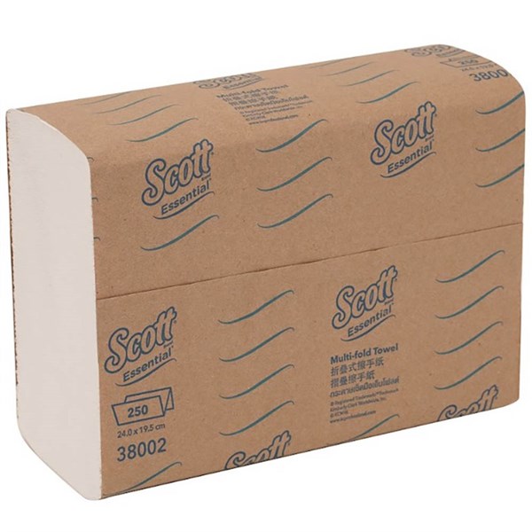 • One case of SCOTT ESSENTIAL Ultraslim towels contains 16 packs, each consisting of 150 multifold hand towels