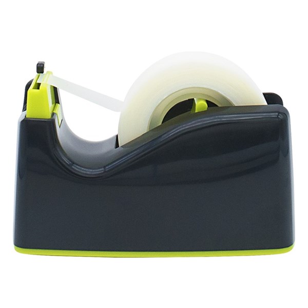 • It has a small size that cuts tape in one motion, with double sided tape on the bottom to keep it secure on your desk