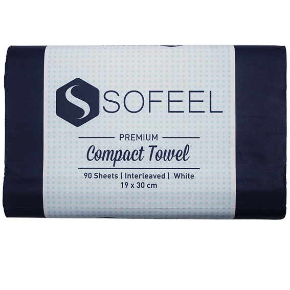 Experience superior softness and hygiene with SOFEEL Premium Interleaved Compact Towels. Designed for efficient one-at-a-time dispensing, these high-quality paper towels help reduce waste while maintaining excellent absorbency and strength. The compact 19 ? 30 cm size makes them ideal for busy washrooms, kitchens, offices, healthcare settings, and commercial environments.
