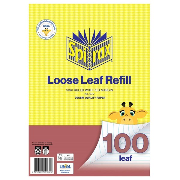 SPIRAX 272 LOOSE REFILL A4 7MM 100 LEAF
