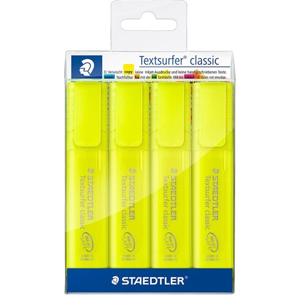 STAEDTLER 364 TEXTSURFER CLASSIC HIGHLIGHTER CHISEL YELLOW PACK 4