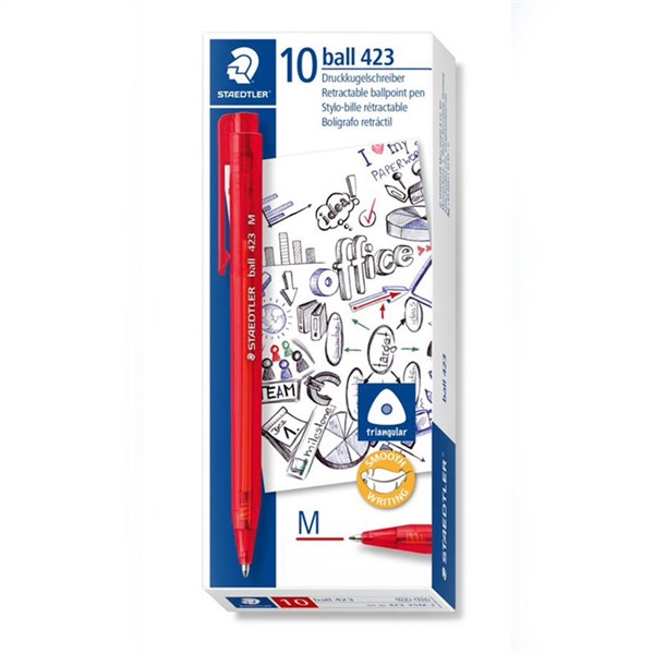 STAEDTLER 4230 M STICK ICE TRIANGULAR RETRACTABLE BALLPOINT PEN MEDIUM RED BOX 10
