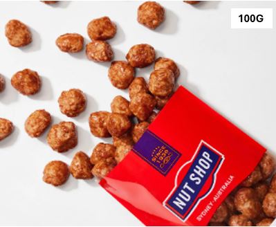 THE NUT SHOP MACADAMIAS CARAMELISED SYDNEY MADE 100G