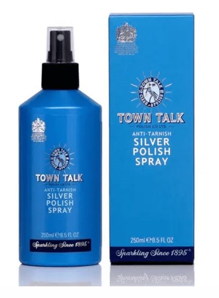 RESTORE THE SHINE OF YOUR SILVER WITH TOWN TALK RENOWNED SILVER POLISHING SPRAY, A CONVENIENT AND EFFECTIVE SOLUTION FOR MAINTAINING THE BRILLIANCE OF SILVER AND SILVER PLATED ITEMS