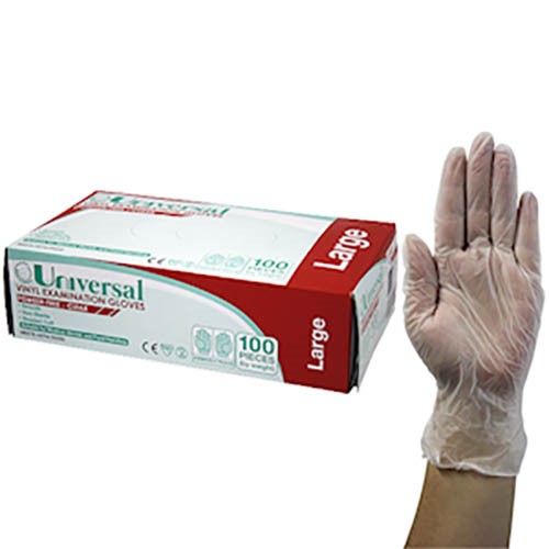 UNIVERSAL CHOICE VINYL EXAMINATION GLOVES LARGE CLEAR CARTON 1000