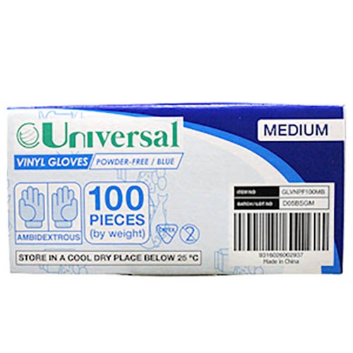 UNIVERSAL CHOICE VINYL GLOVES MEDIUM BLUE BOX 100