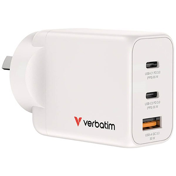 VERBATIM USB GAN CHARGER 65W USB A/C WHITE